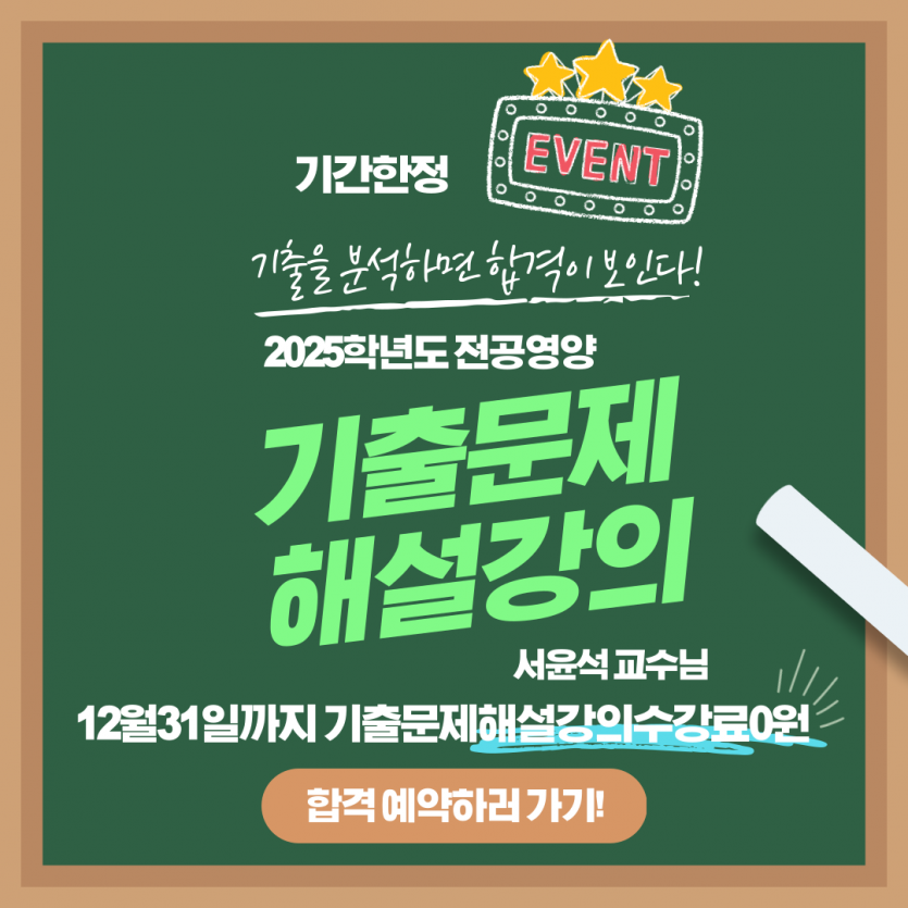 - 이전글[전공기계] 2026학년도대비 전공기계 직강 이벤트 안내 24.12.21