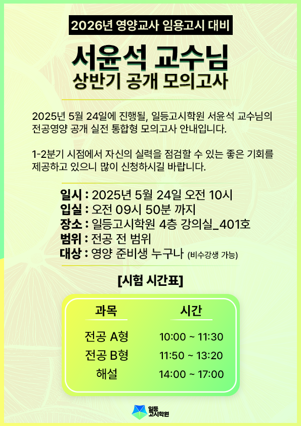 - 이전글2026년대비 전공영양 5-11월 직강 이벤트 25.04.07