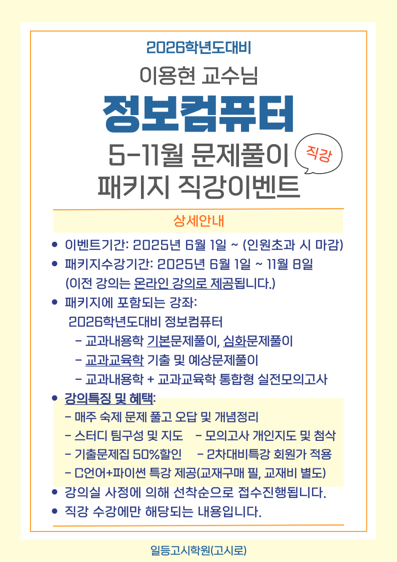- 다음글2026년대비 정보컴퓨터 5-11월 직강 이벤트 25.04.07