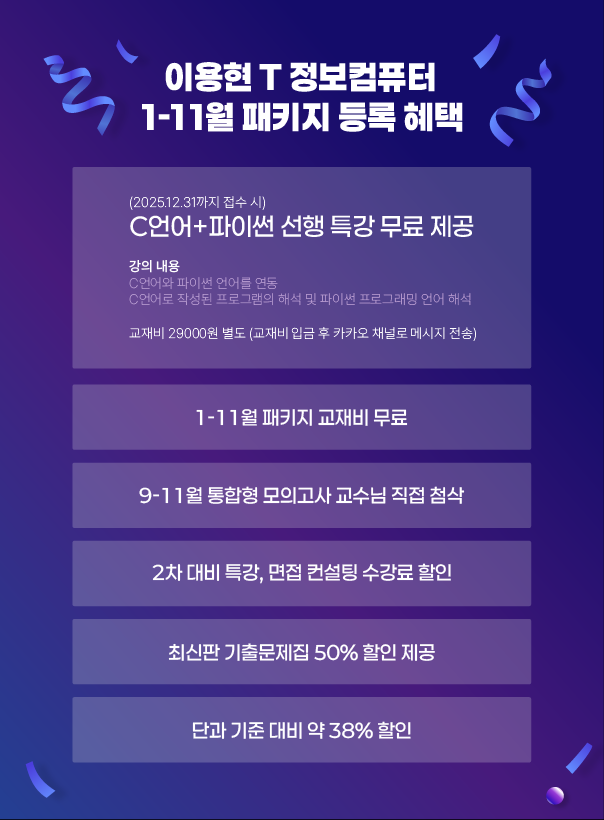 2027년 대비 정보컴퓨터1-11월 패키지현재 접수중입니다.