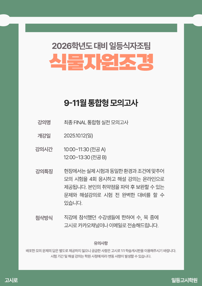 안녕하세요. 식물자원조경 9-11월 직강 세부사항 안내드립니다.