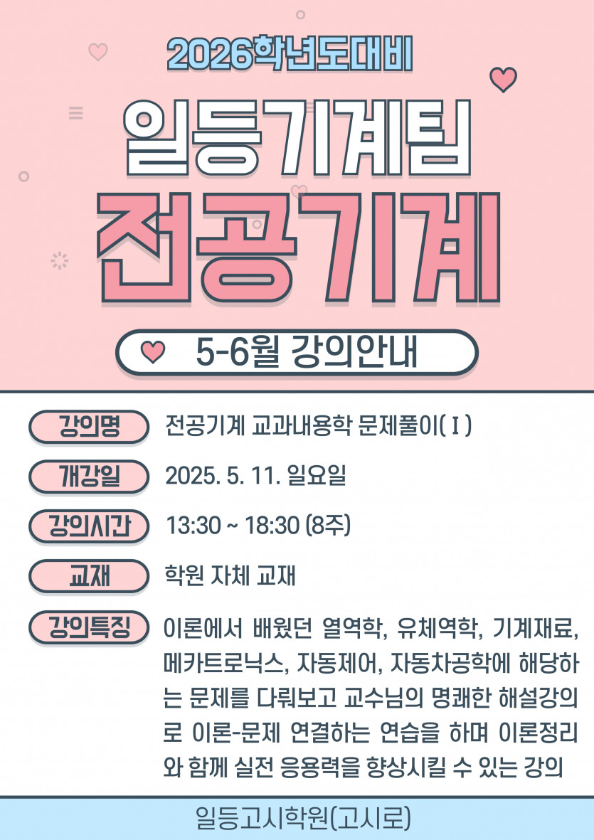 2026년대비 [전공기계 교과내용학 한석현교수님 ] 5-6월 강의안내