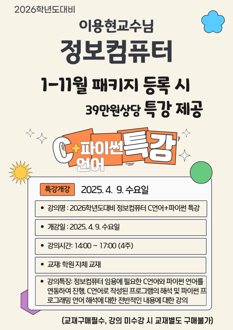 [정보컴퓨터] 1-11월패키지 강의 이벤트 안내