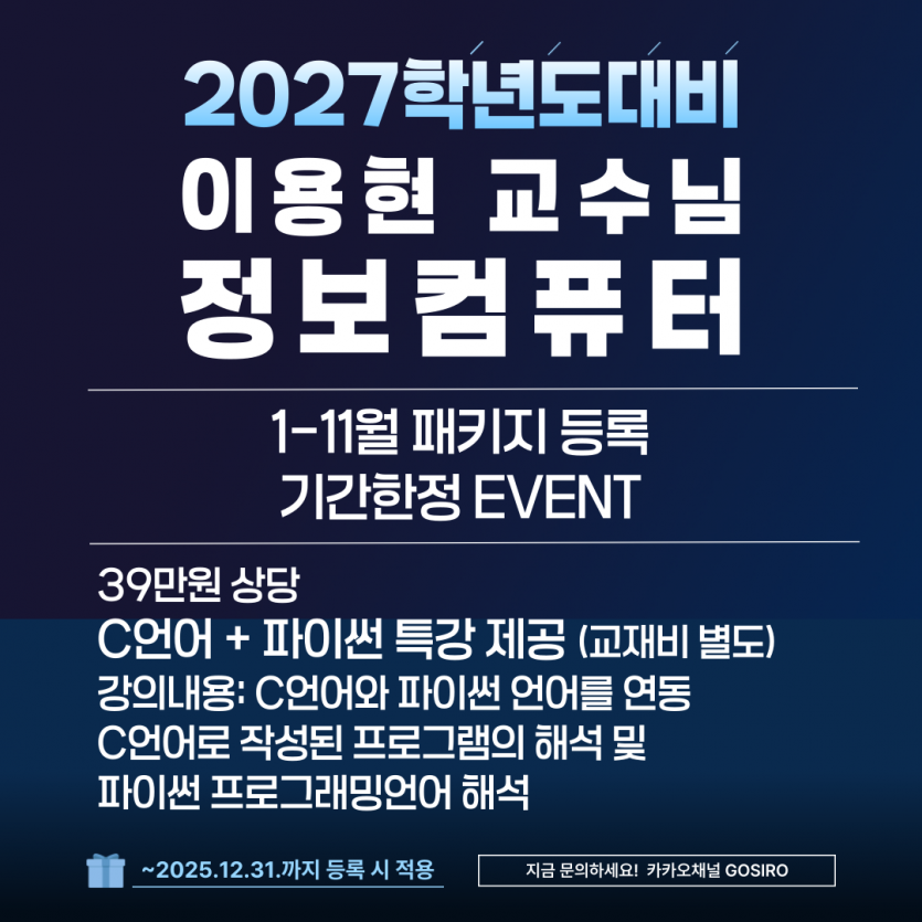 2027학년도 이용현 정보컴퓨터 임용 합격설명회(12월20일 오후2시~)당일 접수도 가능 합니다.