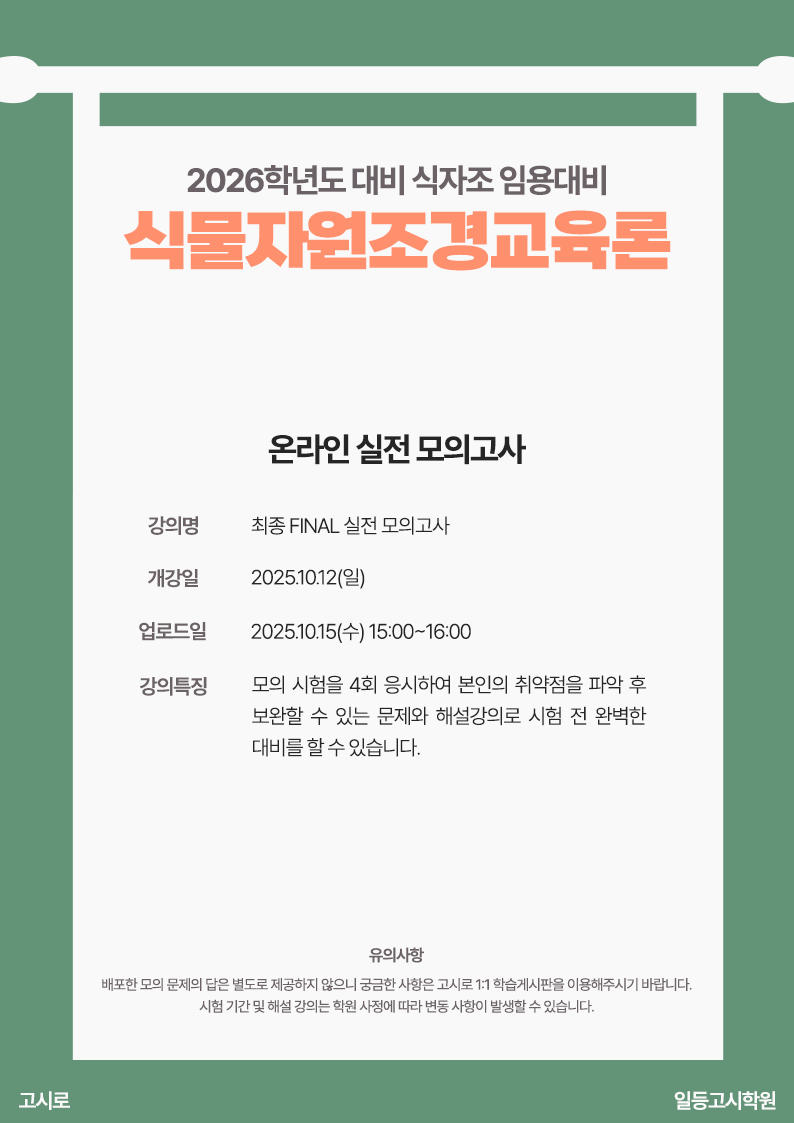 2026년 대비 [식물자원조경교육론] 온라인 실전 모의고사 안내