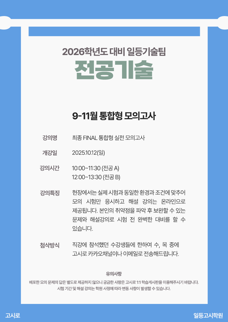2026년대비 [전공기술] 일등팀 10-11월 4회 통합형 실전모의고사 안내