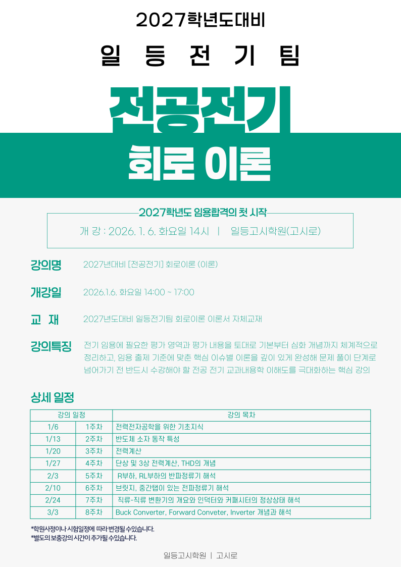 2027학년도대비 전공전기 1-2월 강의안내