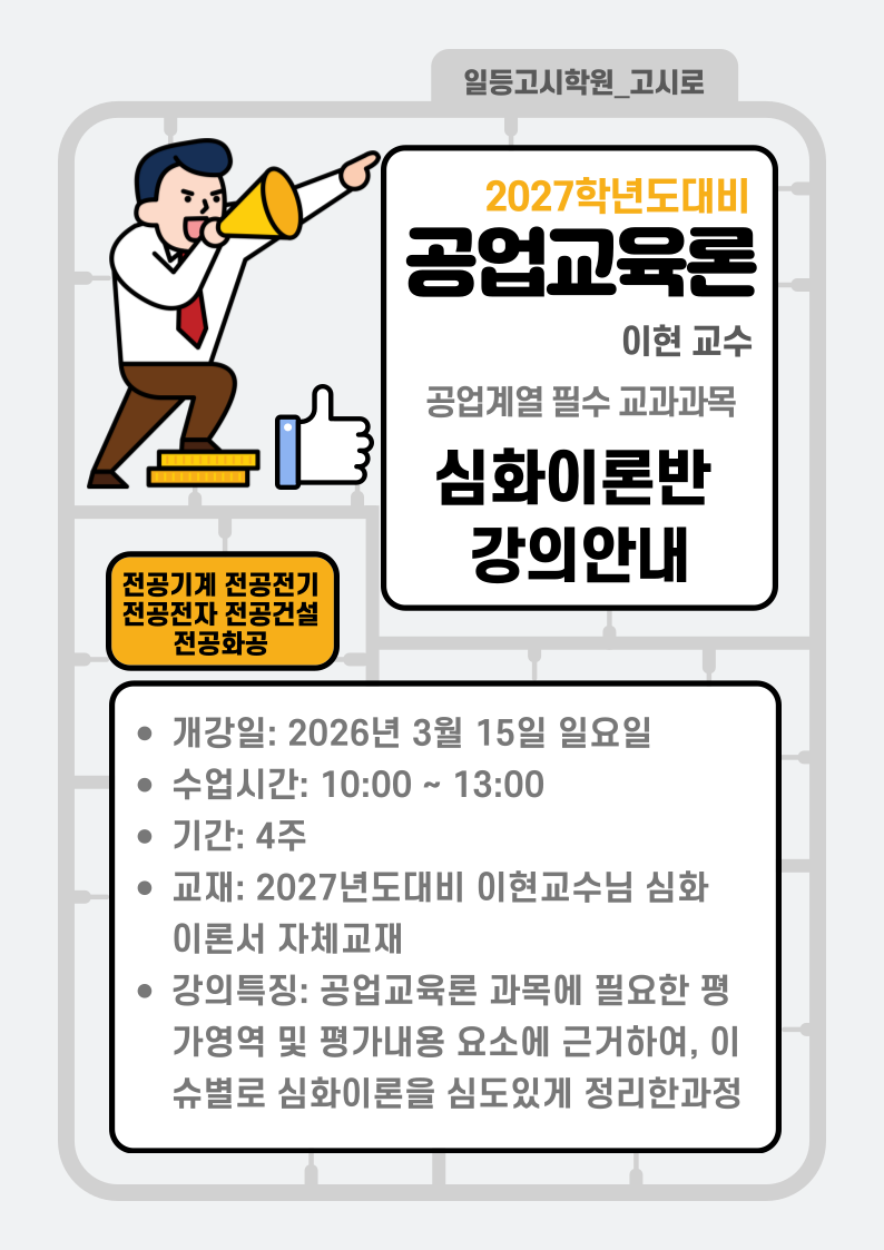 2027학년도대비 공업교육론 3-4월 개강 강의안내