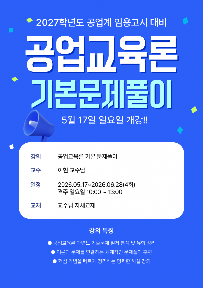 - 이전글2027년대비 한석현 [전공기계 ] 문제풀이(1) 개강 안내 26.04.11