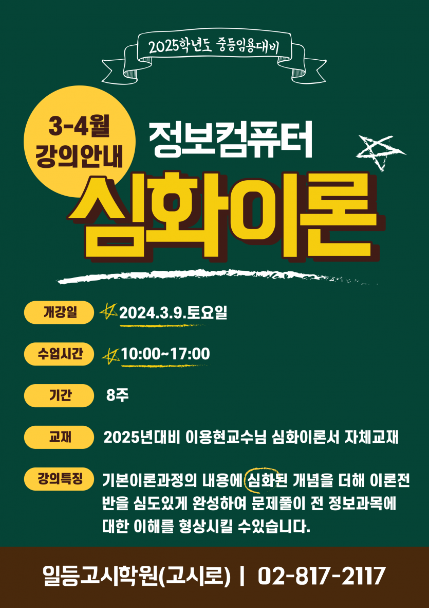 [정보컴퓨터] 2025년도대비 3-4월 심화이론반 강의안내