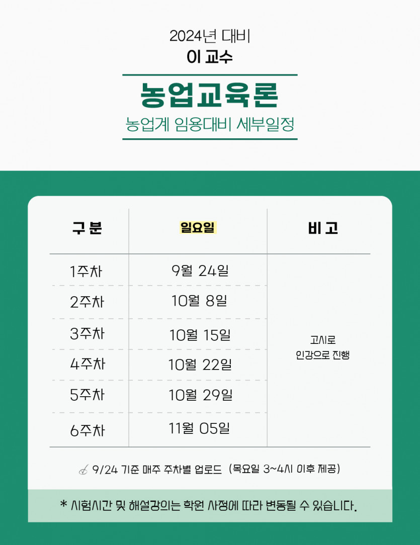 2024년 대비 전공 농업교육론 모의고사 안내