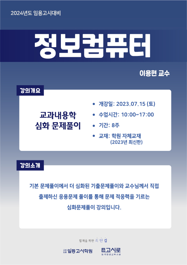 2024년대비 이용현 정보컴퓨터 7-8월 개강 안내입니다.