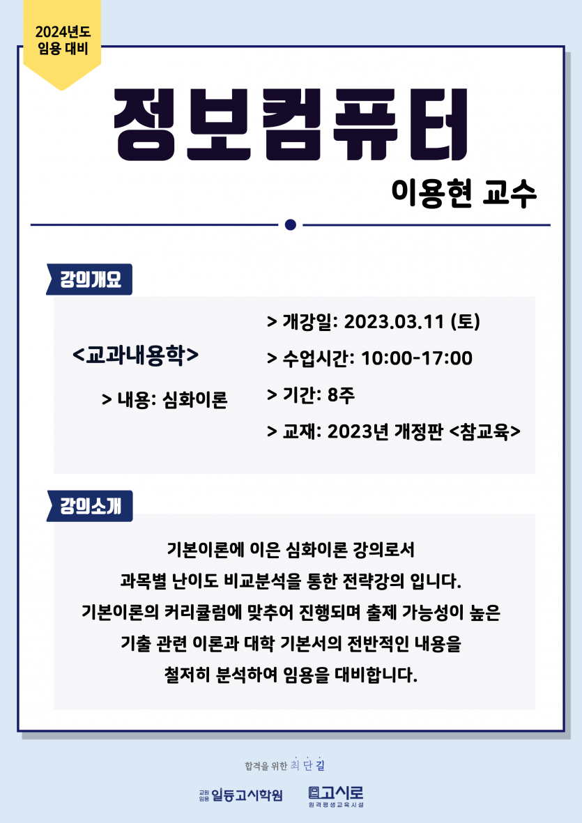 [정보컴퓨터] 2024년 대비 3-4월 개강 안내