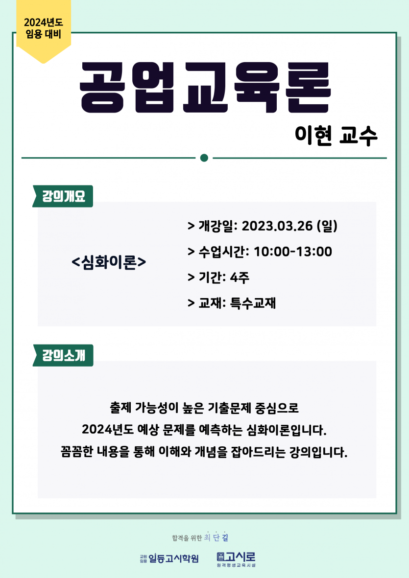 [공업교육론] 2024년 대비 3-4월 개강 안내