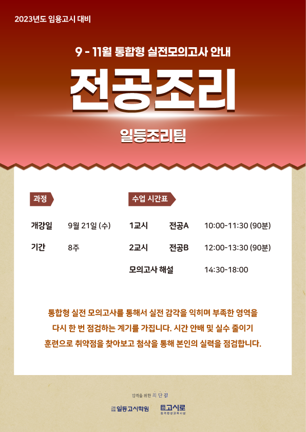 2023년대비 [전공조리] 모의고사 9-11월 강의안내