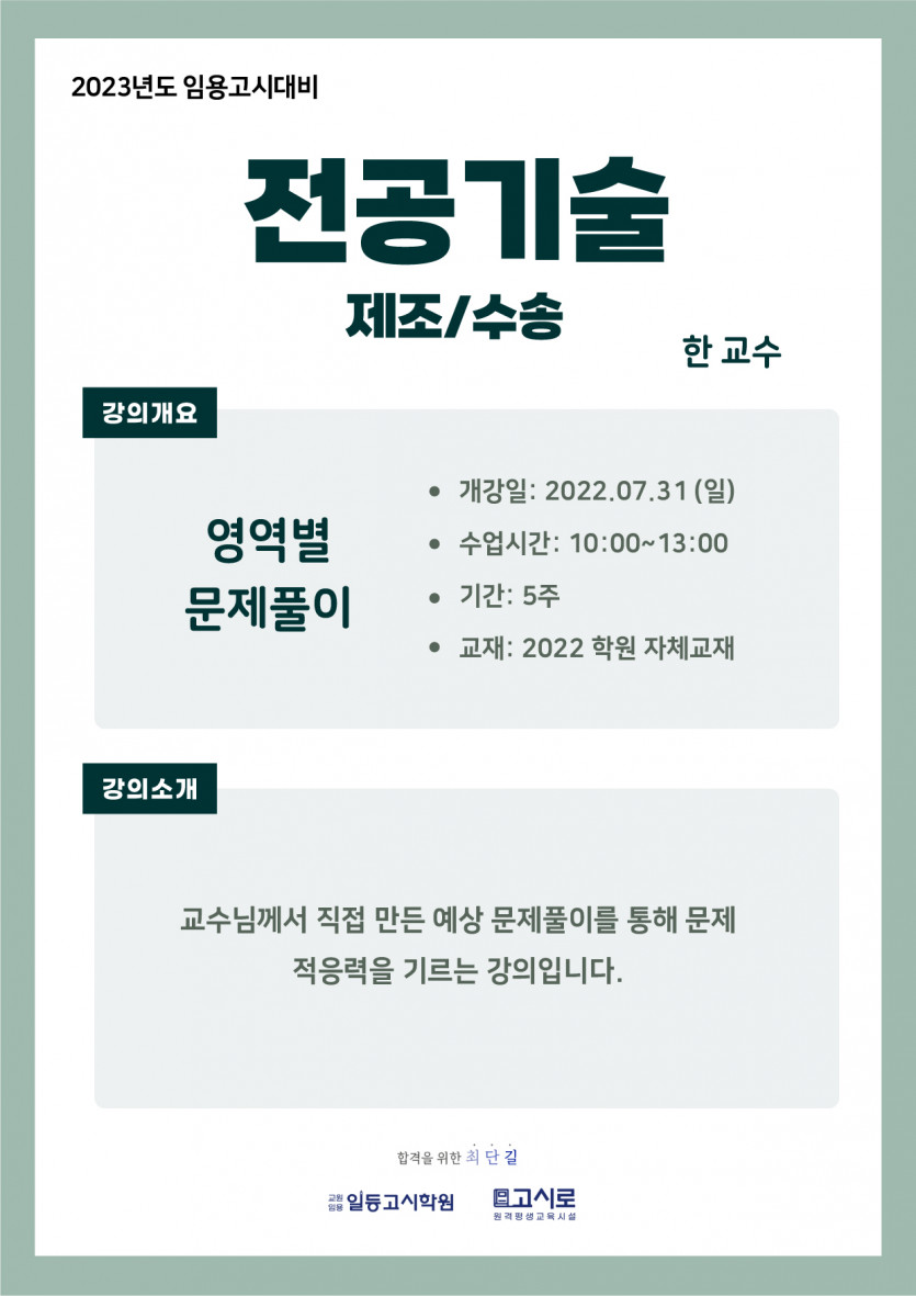 2023년대비 [전공기술 : 제조/수송] 7월 강의안내