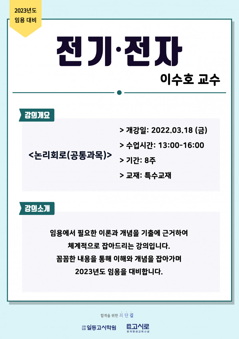 2023년대비 [전기전자:논리회로] 3~4월 강의안내
