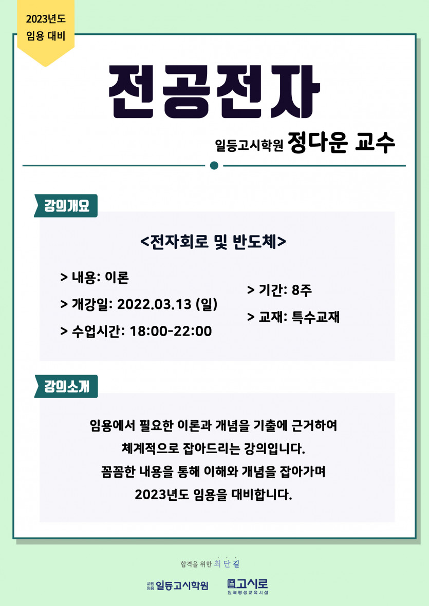 2023년대비 [전자:전자회로 및 반도체] 3~4월 강의안내