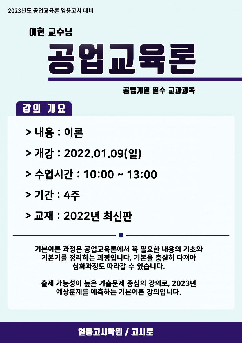 [공업교육론] 2023년대비 1~2월 강의안내