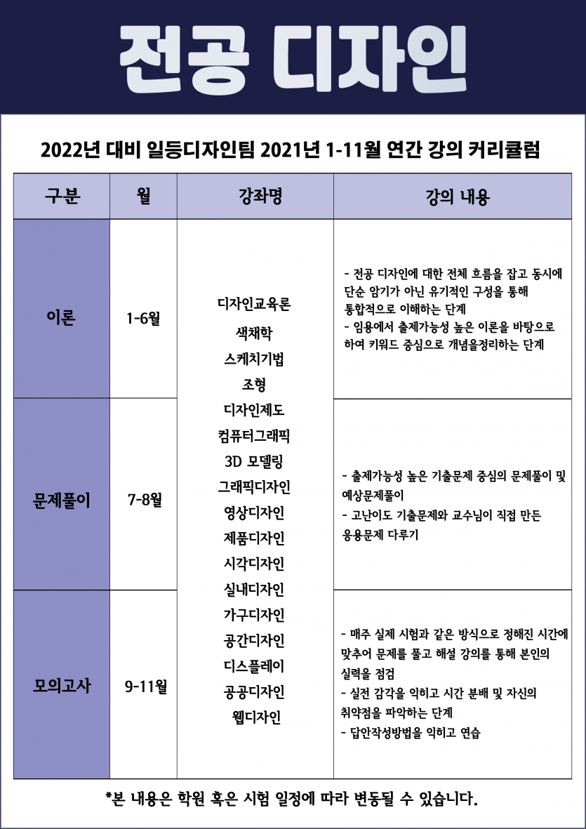 2022년대비 전공디자인 연간커리큘럼 안내
