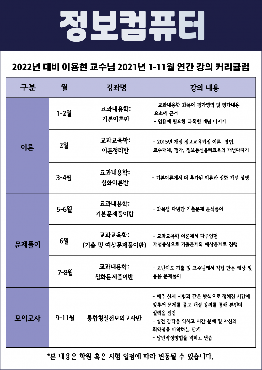 2022년대비 정보컴퓨터 연간커리큘럼 안내입니다.