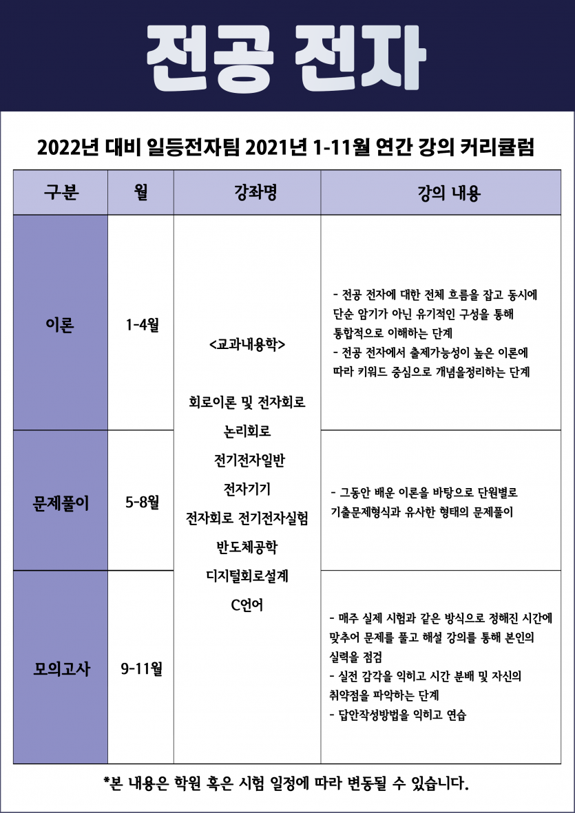 2022년대비 전공전자 연간커리큘럼 안내입니다.