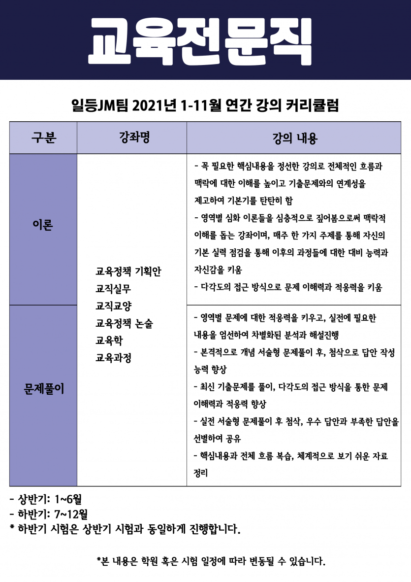 2022년대비 교육전문직 연간커리큘럼 안내입니다.