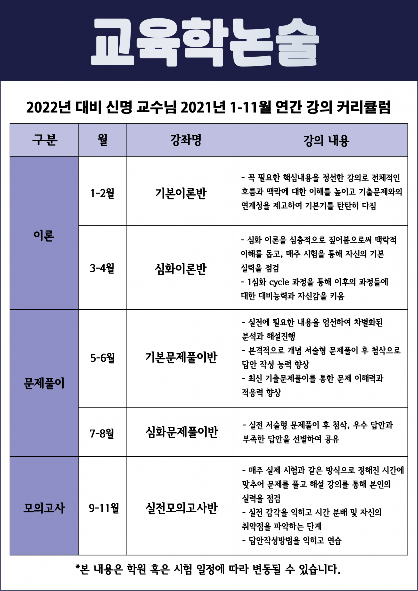 2022년대비 교육학논술 연간커리큘럼 안내