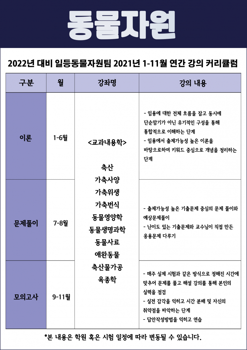 2022년대비 동물자원 연간커리큘럼 안내입니다.