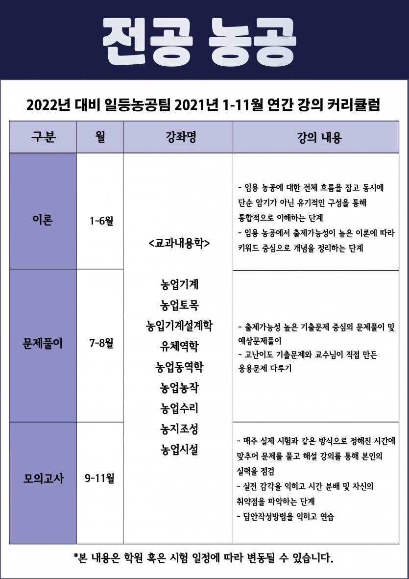 2022년대비 전공농공 연간커리큘럼 안내