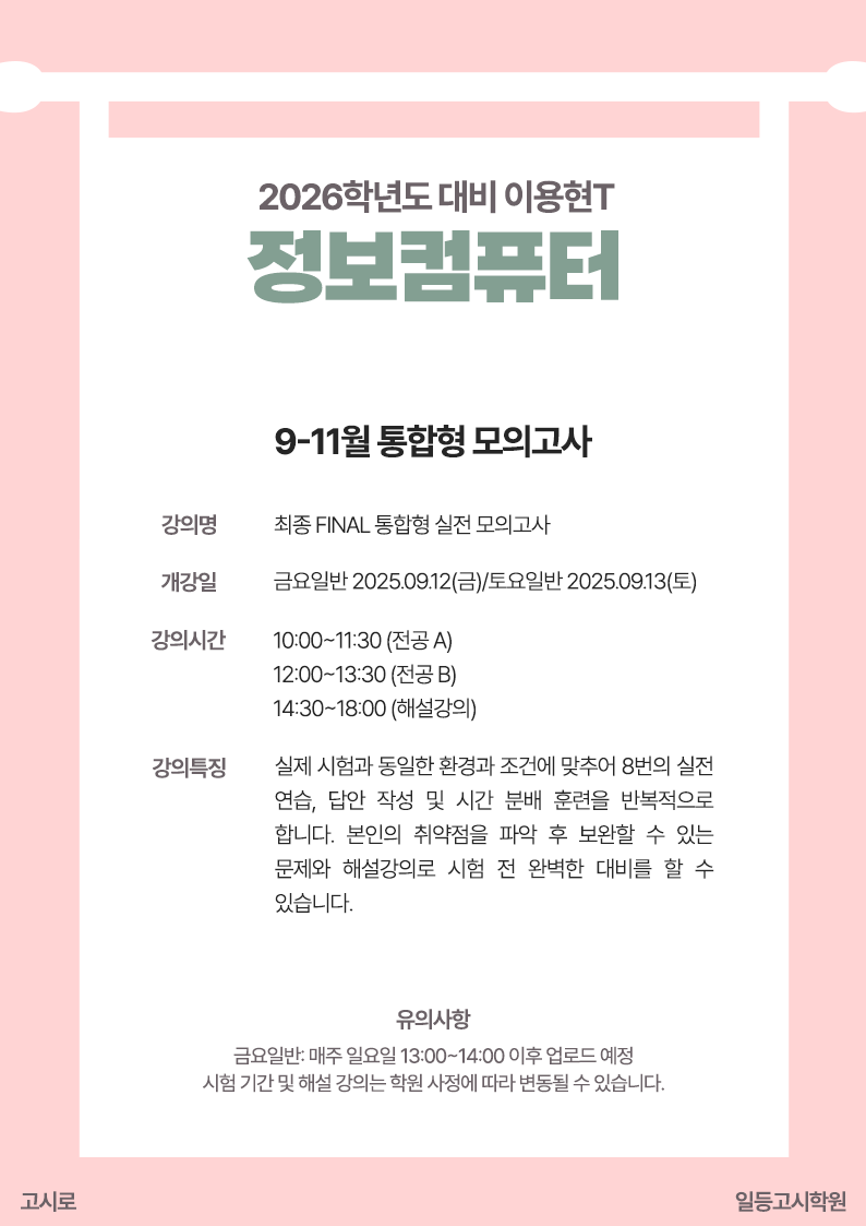 2026학년도 정보컴퓨터 이용현교수님 9-11월 강의안내