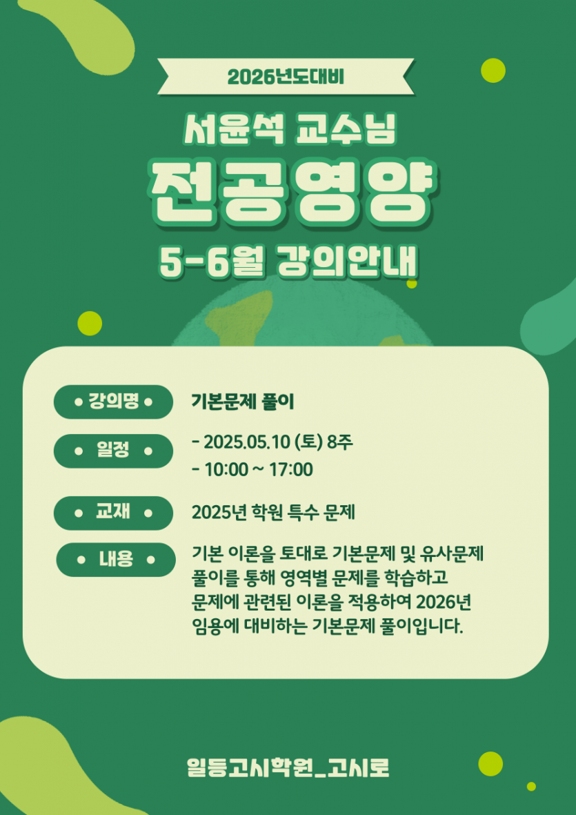2026년대비 [전공영양 ] 5-6월 강의안내