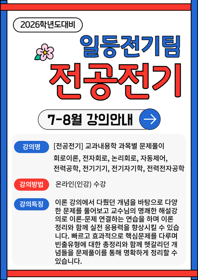 - 다음글2026년대비 [전공전자] 7-8월 강의안내 25.06.01