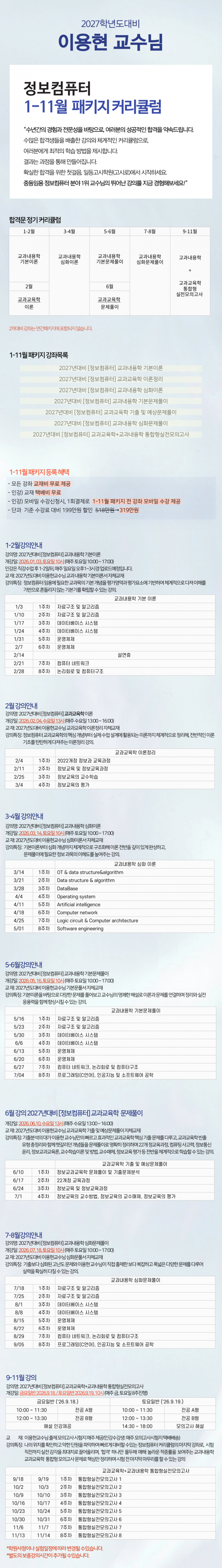 2027학년대비 이용현 [정보컴퓨터] 1-11월 패키지 강의 안내 (**필독) ('26.3.21.업데이트)