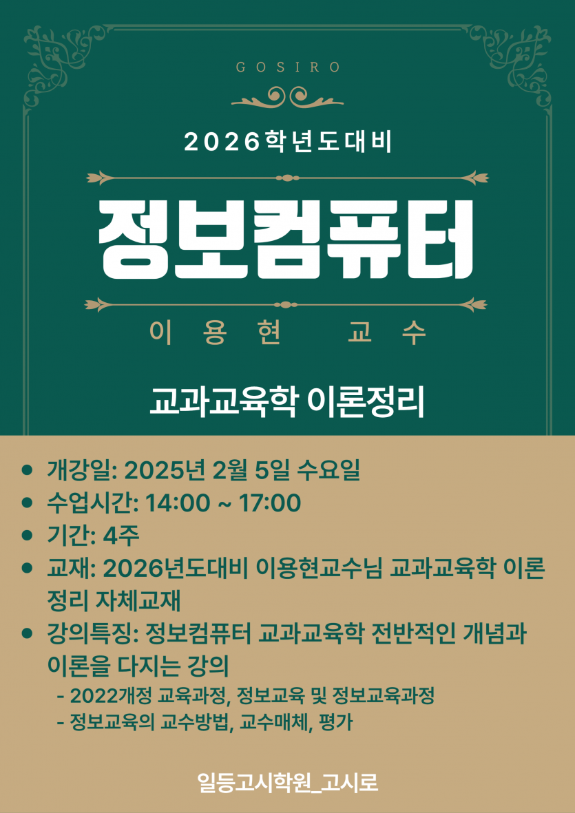 2026년대비 2025 [정보컴퓨터 교과교육학 ] 2월 강의안내