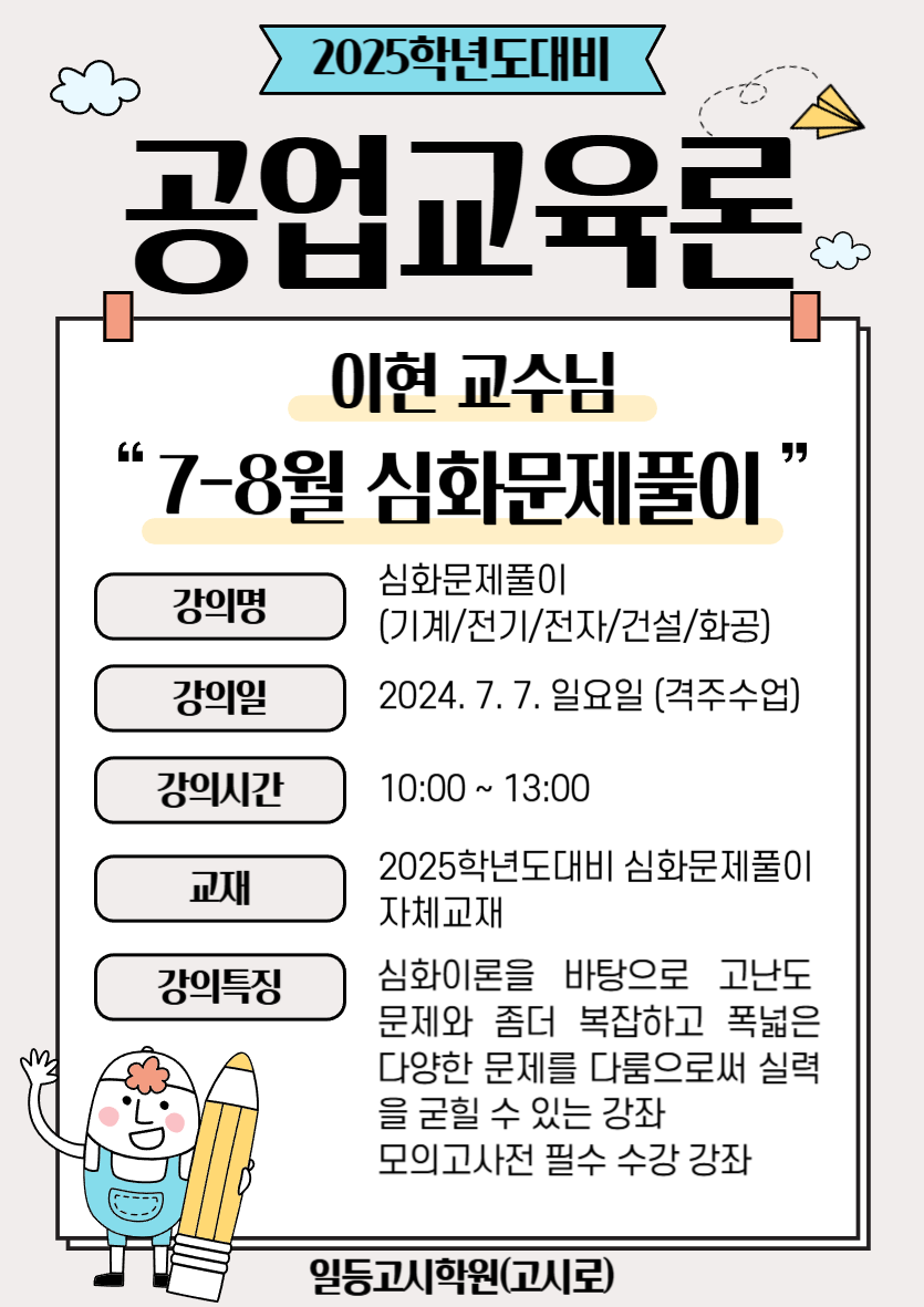 [공업교육론] 2025년도대비 7-8월 심화문제풀이 강의안내