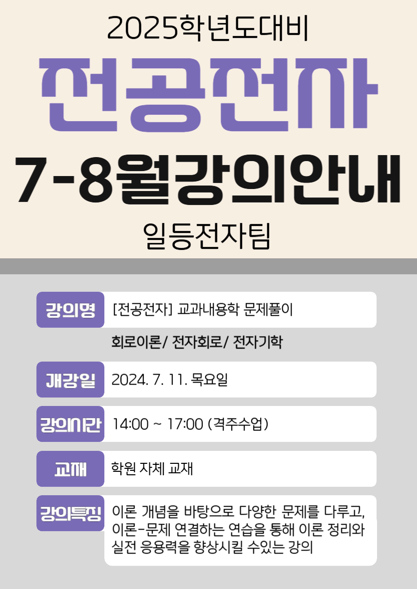 [전공전자] 2025년도대비 7-8월 문제풀이 강의안내