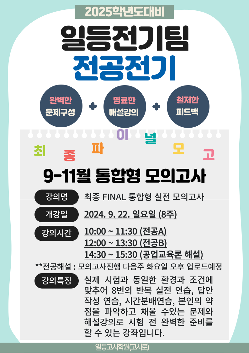 [전공전기] 9-11월 통합형 실전모의고사 강의안내