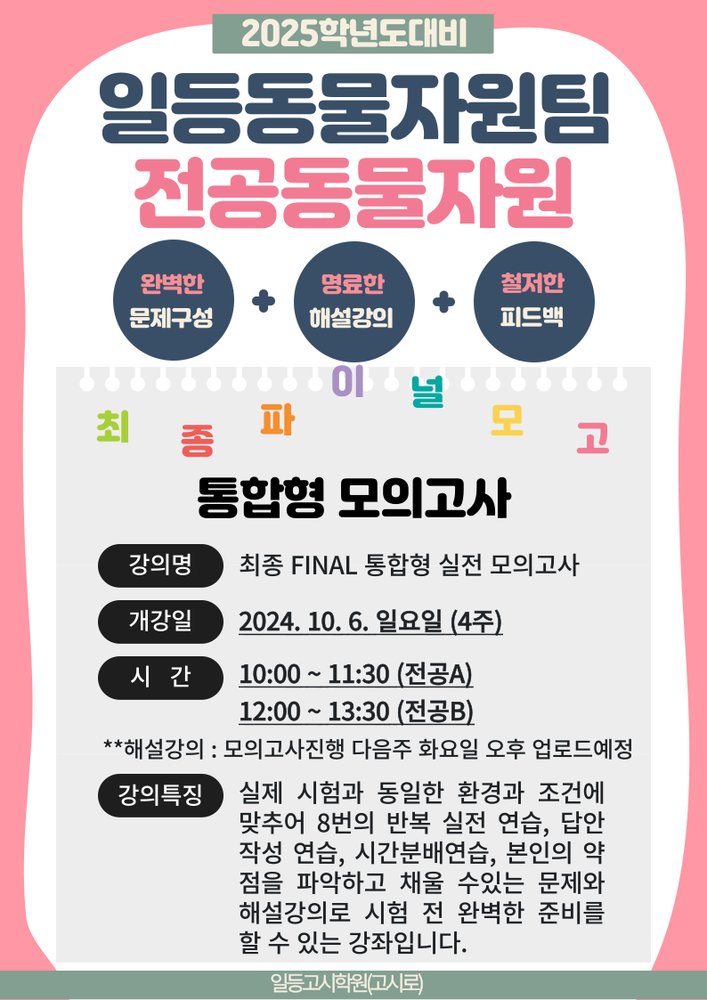 [전공 동물자원 ] 통합형실전모의고사 강의안내