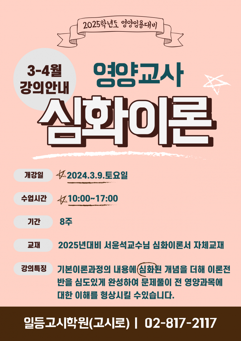 [전공영양] 2025년도대비 3-4월 심화이론반 강의안내