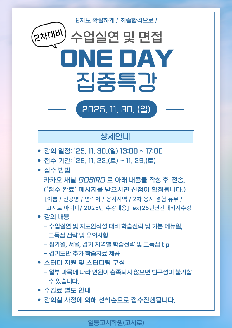 - 이전글2027학년대비 이용현 [정보컴퓨터] 1-11월 패키지 강의 안내 (**필독) 25.11.09