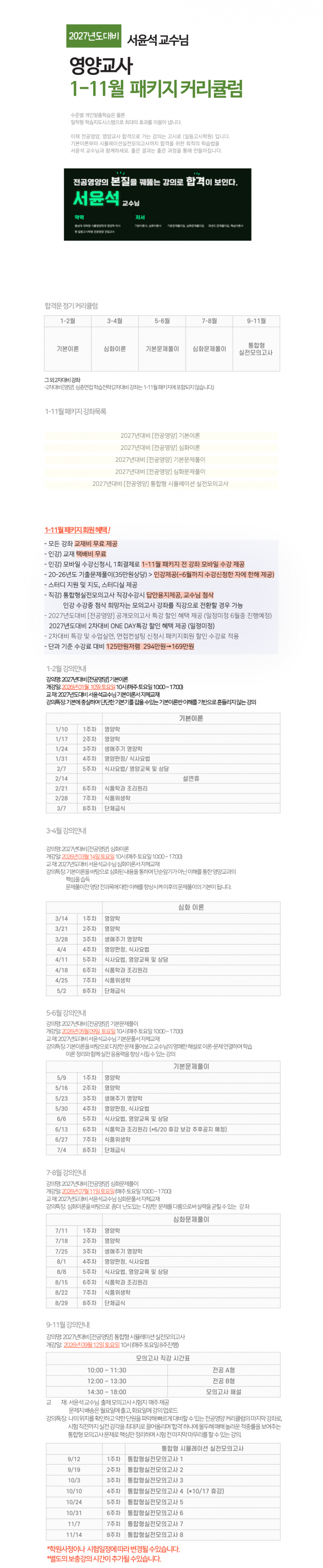 2027학년대비 서윤석 [전공영양] 1-11월 패키지 강의 안내 (**필독)