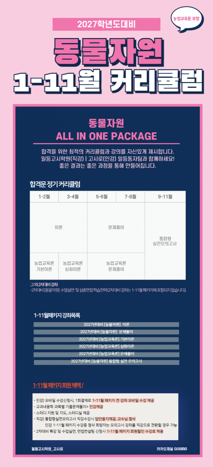 2027학년대비 동물자원 이론&문제&모의고사 패키지 강의 안내