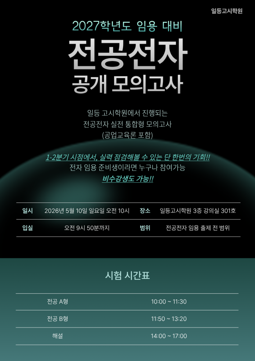 2027학년도대비 오프라인 [전공전자] 공개모의고사 일정 안내